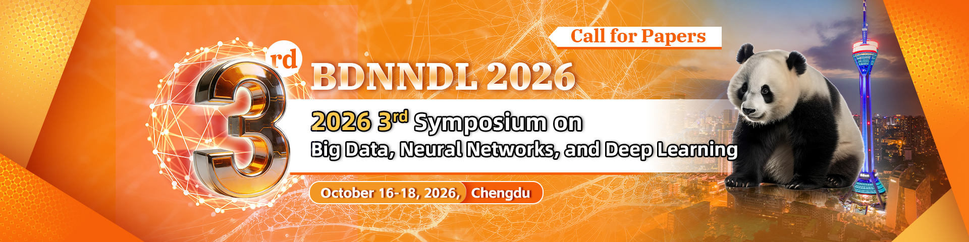Welcome to BDNNDL 2026! The 3rd Symposium on Big Data, Neural Networks, and Deep Learning is coming to Chengdu. Mark your calendars for October 16-18, 2026, and be part of the conversation shaping the future of AI.